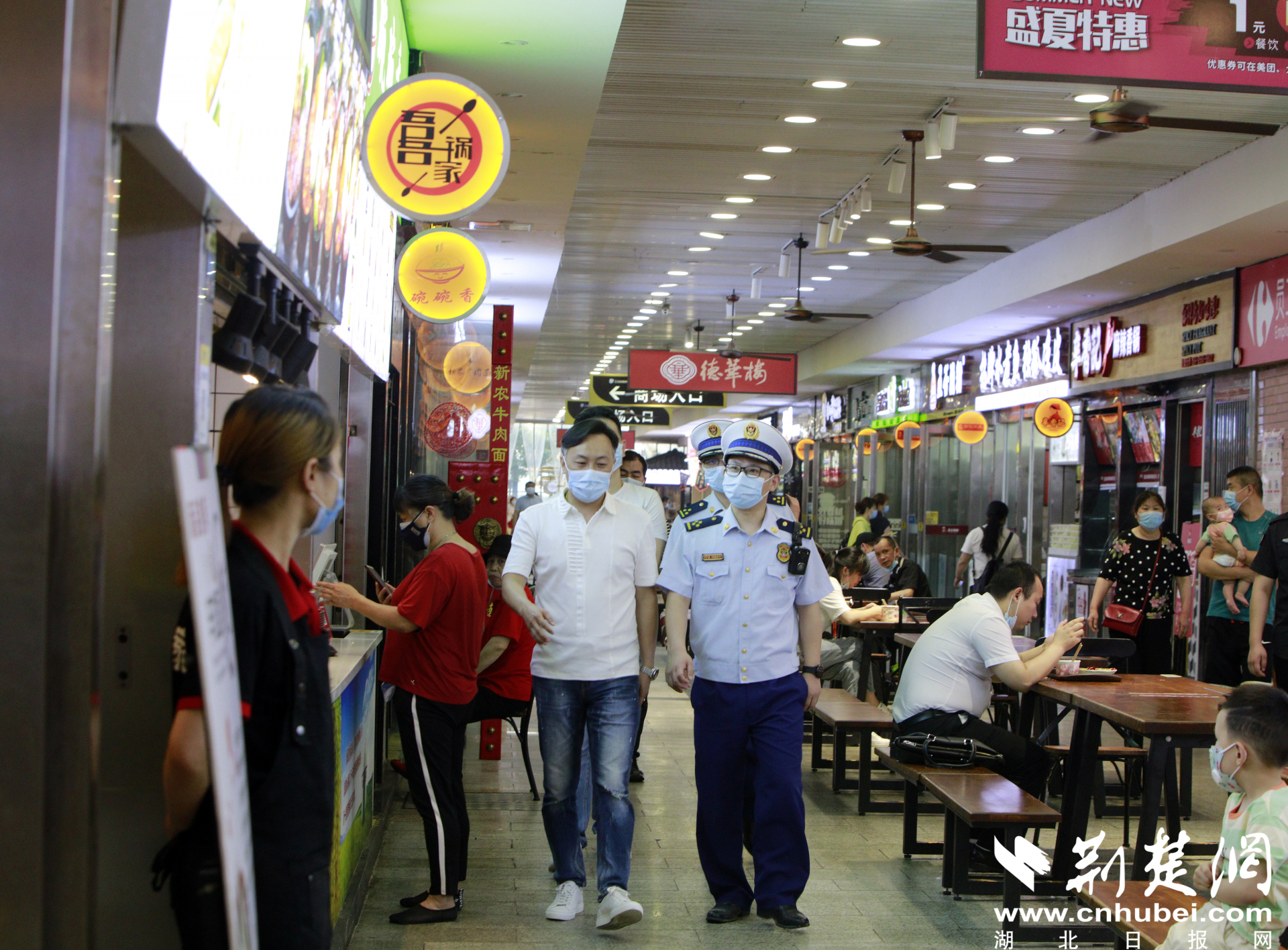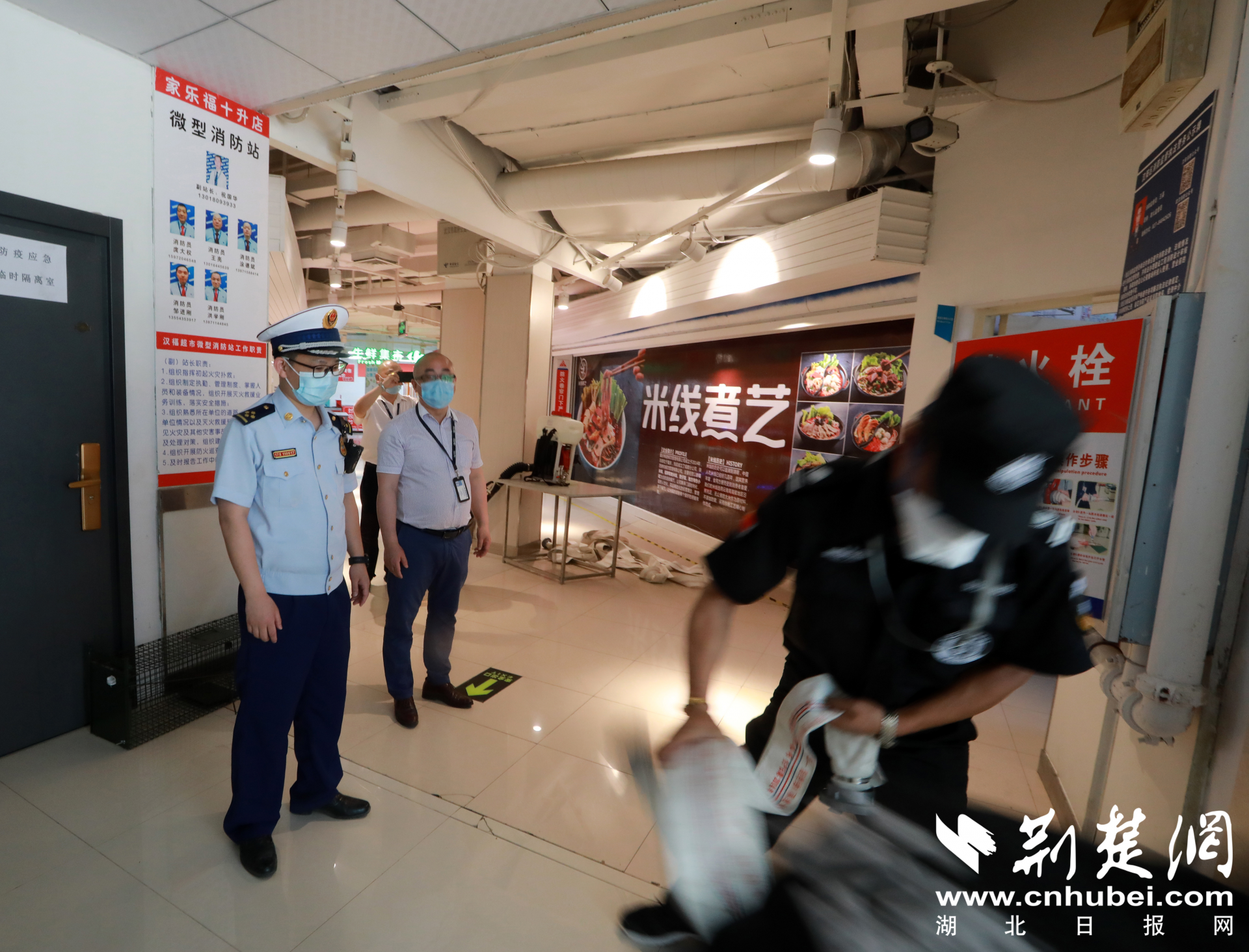 荆楚网客户端—荆楚网消息(通讯员王方)5月27日,笔者在湖北省武汉市汉阳区家乐福超市、艳阳天酒店、简食街等场所看到,这些商超和餐饮门店已逐步对外开放,客流量有序恢复,辖区消防监督人员在现场提供消防安全指导服务。