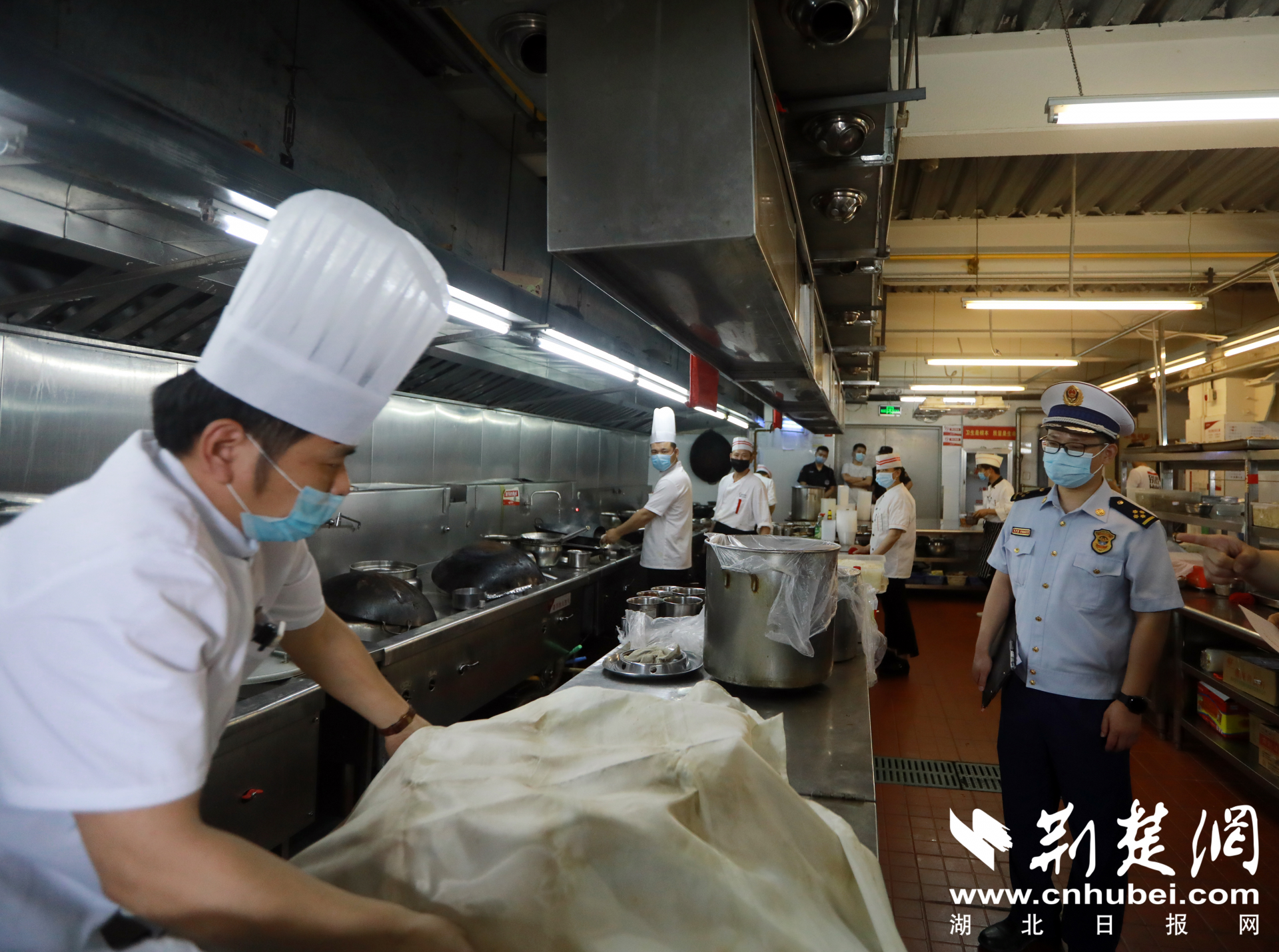 汉阳区简食街,2名消防监督员在检查内部消防安全设施设备是否完好有效。(摄影:通讯员王方)