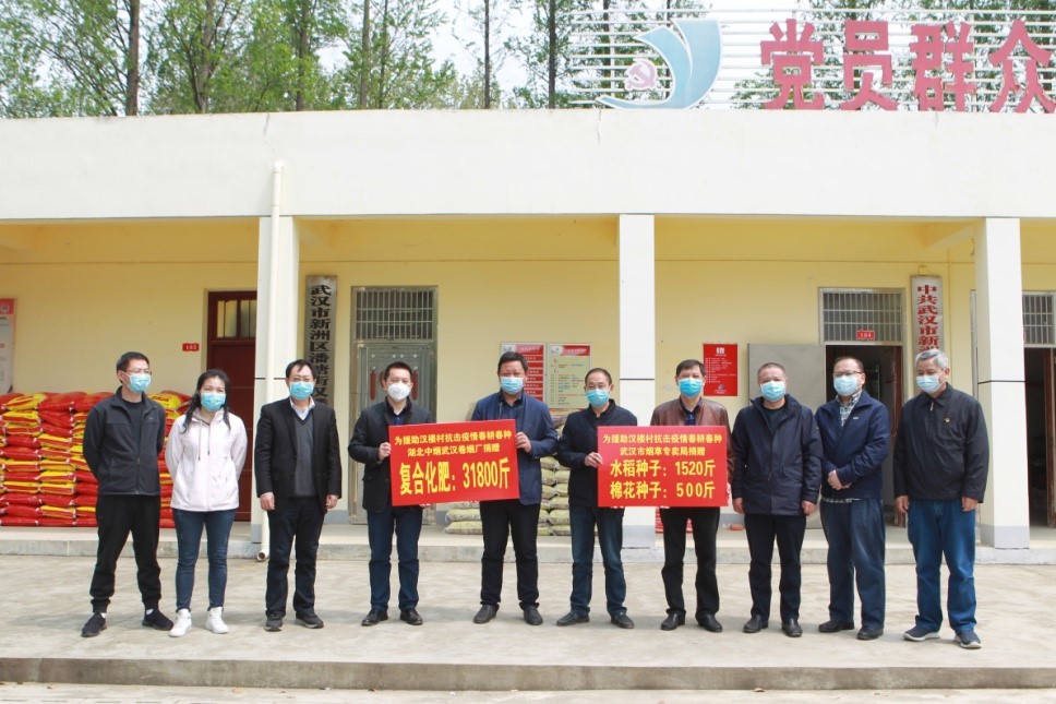 图为武汉市烟草专卖局、武汉卷烟厂向汉楼村捐赠春耕备耕生产物资。
