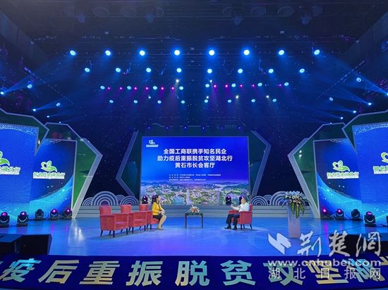 活动现场,黄石市市长吴锦对外介绍本地人文特色特点、黄石经济社会发展情况,并视频连线全国知名企业负责人,聚焦黄石疫后重振,助力脱贫攻坚。