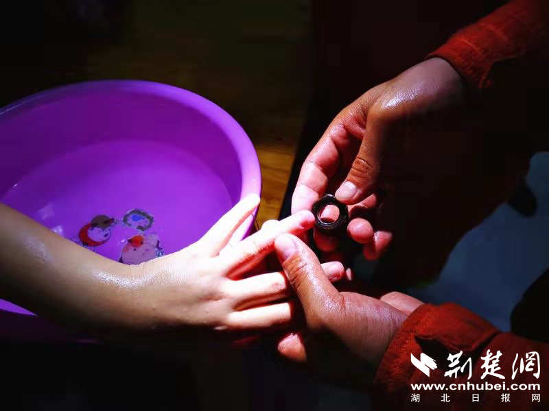 “先将孩子手指放入冰水中消肿,再用一根棉线,穿过螺母环,线的一头缠绕被卡部位一点点收紧皮肤,线的另一头用力朝收紧方向拉拽将螺母缓慢顶出。”队长程宇说。“不要看,把头抬起来,坚持一下,不疼不疼啊,男子汉坚强一些”!由于怕弄疼孩子,救援人员每一个动作都小心翼翼,并不时和孩子聊天安抚孩子的情绪。经过近三十分钟的紧张救援,成功将螺母摘除。
