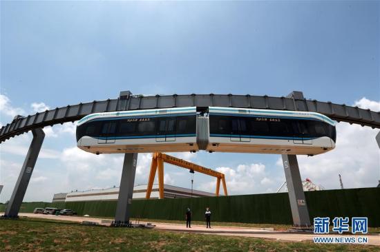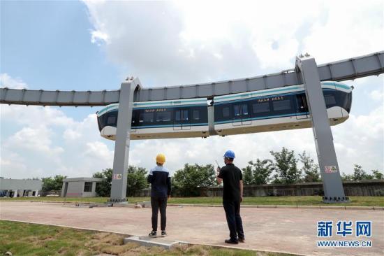 6月4日,空中轨道列车在武汉中铁科工集团江夏制造基地的试验线上试跑。 新华社发 赵军 摄 图片来源:新华网