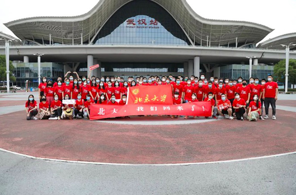 北大学子离汉前在武汉火车站合影。 本文图片均由北京大学供图