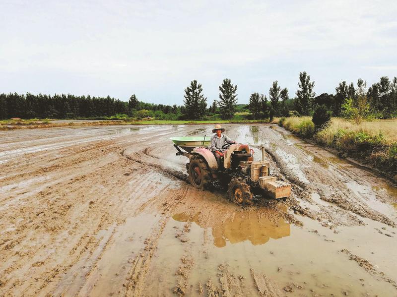 随县澴潭镇黄林村香稻种植基地抢农时忙生产。