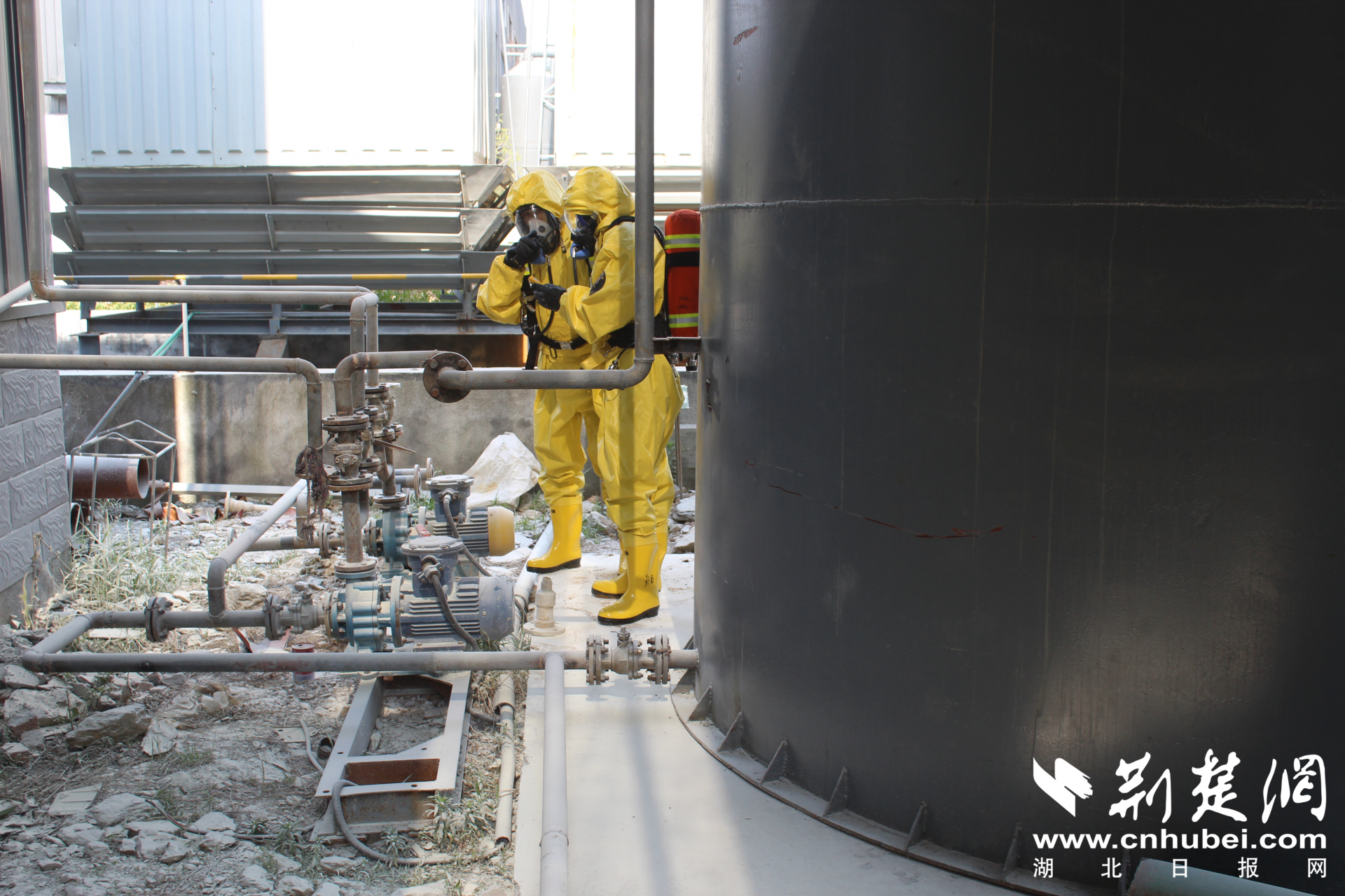 荆楚网客户端—荆楚网消息(通讯员 蔡传波 杨玲玲)6月9日,十堰市消防救援支队竹溪大队联合县应急管理局、工业园区管委会、湖北溪润竹医药科技,开展危化品泄露事故处置实战演练。