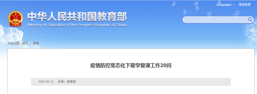 近日,教育部、国家卫健委联合发布《疫情防控常态化下复学复课工作20问》,围绕复学复课和疫情防控的总体要求及相关标准、教育教学开展、学校重点场所和学生管理、医务室管理、防疫培训、防疫物资和后勤保障、学生心理疏导、核酸检测、夏季传染病防治等方面,解答了师生、家长普遍关注的热点问题。