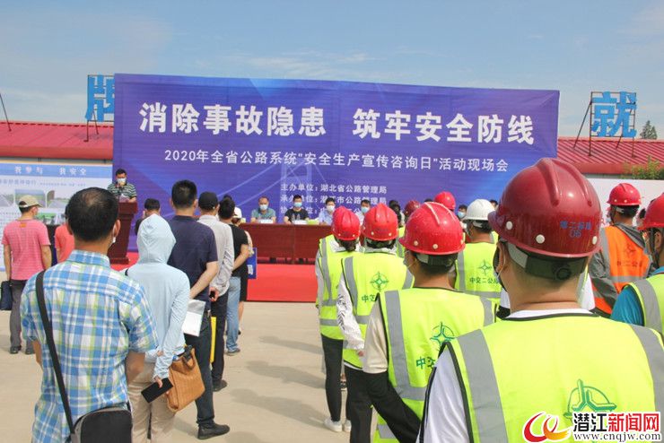 潜江新闻网讯(记者 王宇杰)今年6月是第19个全国“安全生产月”,为推进交通运输系统“安全生产月”活动深入开展, 6月16日,由省公路管理局主办,潜江市公路管理局承办,中交二公局S247潜江汉江大桥建设项目部协办的2020年全省公路系统“安全生产宣传咨询日”活动在S247潜江汉江大桥建设项目部举行。省公路管理局相关领导及潜江、荆州、荆门、仙桃、天门等公路系统单位相关人员参加活动。