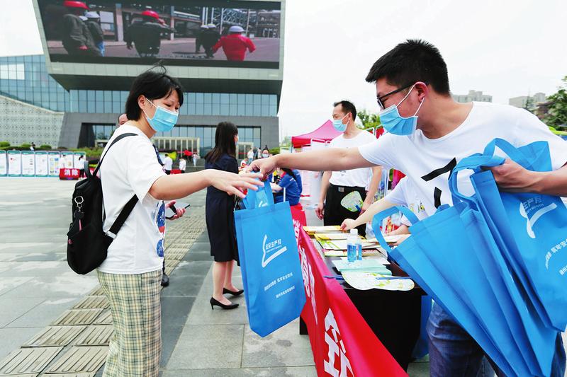 6月16日是“全国安全宣传咨询日”,市安委会25个成员单位在市规划展览馆门前广场设置展板和咨询台,宣传安全知识,现场答复关于主管行业领域的咨询。图为工作人员向市民发放装有应急与安全知识手册、手柄扇等宣传品的手提袋。 (随州日报全媒记者徐斌摄)
