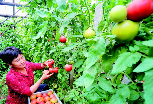 ▲6月18日,唐山市丰南区黄各庄镇双坨村农民在大棚内采摘西红柿。连日来,河北省唐山市丰南区在做好疫情防控工作的同时,引导农民积极做好蔬菜生产,供应京津市场。据介绍,目前该区蔬菜种植面积达13.5万亩,年产蔬菜60多万吨。