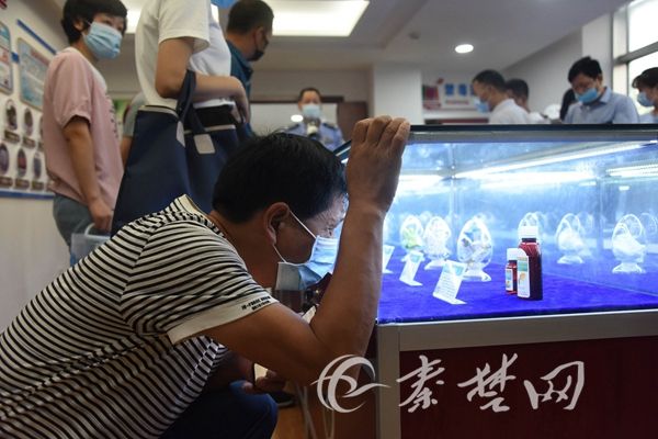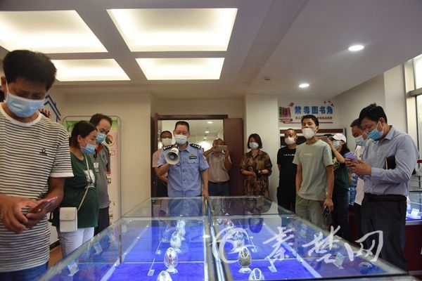 “毒品样品标识牌上面有个二维码,大家用手机扫了这个二维码以后,都能看到此款毒品的详细介绍。”市公安局经开区分局禁毒大队大队长范家林在毒品宣传展示厅内,手里拿出“摇头丸”的毒品样品向前来参观学习的人员讲解毒品的种类及危害等禁毒知识。