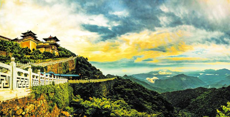 6月18日傍晚,雨后初晴的大洪山云潮涌动,金顶在夕阳的照耀下金碧辉煌,格外雄伟壮观。 (随州日报全媒记者李文军、通讯员韩启璞摄)
