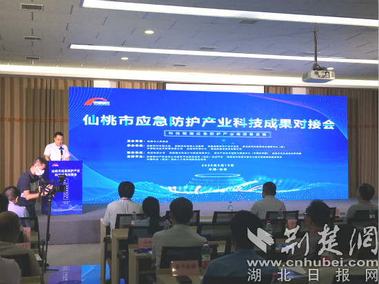 仙桃市应急防护产业科技成果对接会现场(记者冯凯摄)