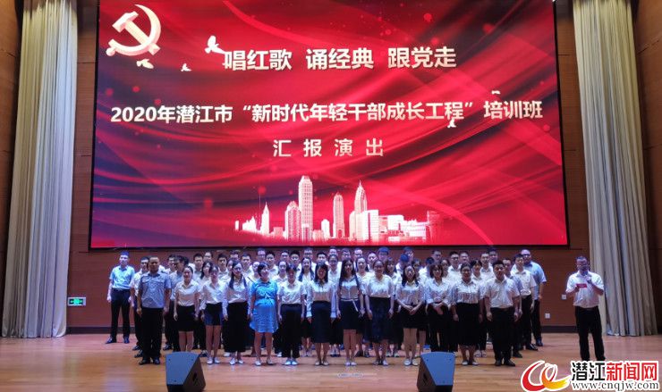 潜江新闻网讯(记者 曹以成 谭欣)唱红歌、诵经典、跟党走。6月19日下午,潜江市2020年“新时代年轻干部成长工程培训班”汇报演出在中共潜江市委党校国际学术交流中心精彩亮相。59名来自不同工作岗位的学员怀揣共同的信念与梦想,利用业余时间,经过近一周排练,为观众献上了一场精彩绝伦的汇报演出。