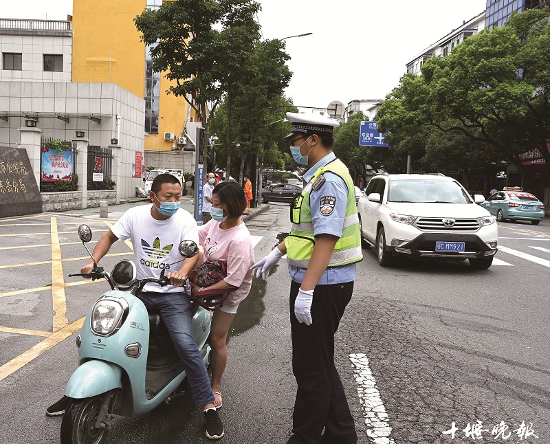 十堰晚报讯 6月29日,市公安交管局在城区开展“一盔一带”专项整治,对摩托车、电动车车主不戴安全头盔、违法载人等问题进行查处。