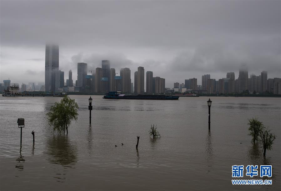 7月6日,船舶经过汉口江滩附近水域。 新华社记者 肖艺九 摄