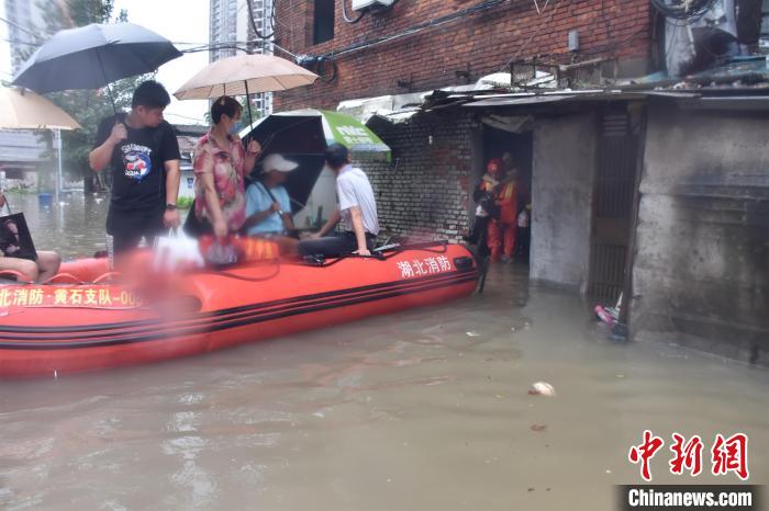 中新网黄石7月6日电 (张登辉)受强降雨影响,湖北黄石一老旧小区6日出现内涝,有居民被困等待救援。当地消防经过3个多小时逐户排查,多趟往返救出52人,并协助居民将家中电动车、冰箱、液晶电视等财产转移。