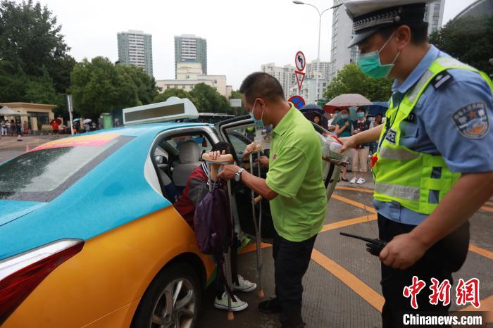 交警和出租车司机帮行动不便考生下车 付蓓蓓 摄