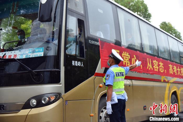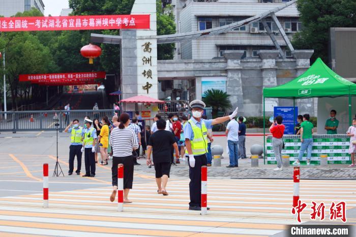 7月7日上午,一年一度的高考在延期一个月后拉开帷幕,湖北宜昌交警全员上岗为考生顺利赴考保驾护航。今年宜昌市共有23410名学子参加高考,共设20个考点,其中城区6个。为做好疫情防控工作,宜昌交警利用数据分析,优化送考车辆行驶路线,开辟“绿色通道”,精确送考车辆到达考点时间,避免考生聚集考点周边,确保高考秩序平稳、安全。