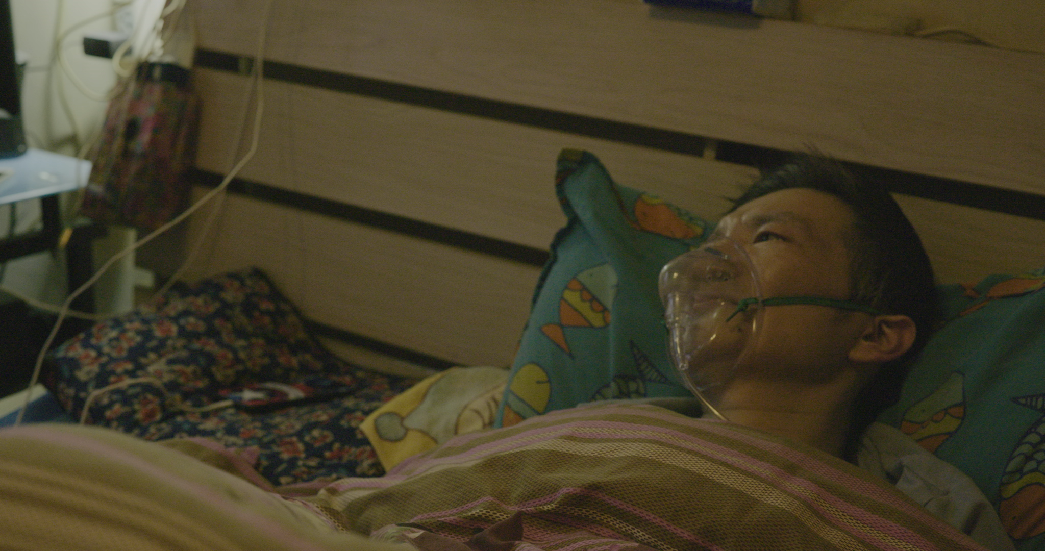 他们一直在设法入院。但城市几近停摆,只能依靠社区帮忙。而丹水池社区里和他们同等紧急的家庭有非常多。局面焦灼,束手无策。终于,三月下旬,在社区工作人员的协调下,黄冲被安排上做了CT。做CT对他是相当大的挑战。他平躺很艰难,几分钟的CT期间不能戴氧气面罩,还要维持双手抱头的姿势。当这几分钟终于过去时,杜进快步冲进去,像对待一个孩童般大大地赞扬他——“真是好,太勇敢了!”