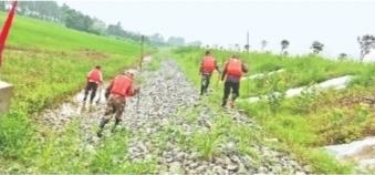 孙教险段也曾出现过管涌险情,往年采用回填沙袋、碎石的方法度汛。2019年,区水务部门在该险段背水面修建了550米的反滤坝,使管涌隐患得到彻底解决。“下层是粗沙过滤,中间碎石形成反压,上面铺上铁网固定碎石。防汛能力大大提升,今年入汛以来还没出现过管涌、散浸等险情。”下午1时,华严寺村副主任宋志卫和5名村民在孙教险段查看大堤有没有渗水,有没有管涌等险情,“每一段堤都要仔细检查,确保河堤稳固。如果发现问题,立即上报处理”。