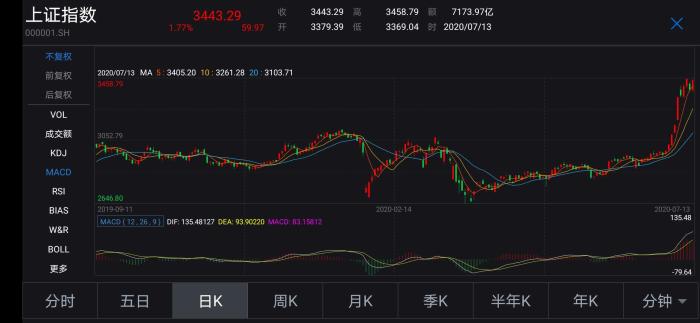 沪指日K走势图。