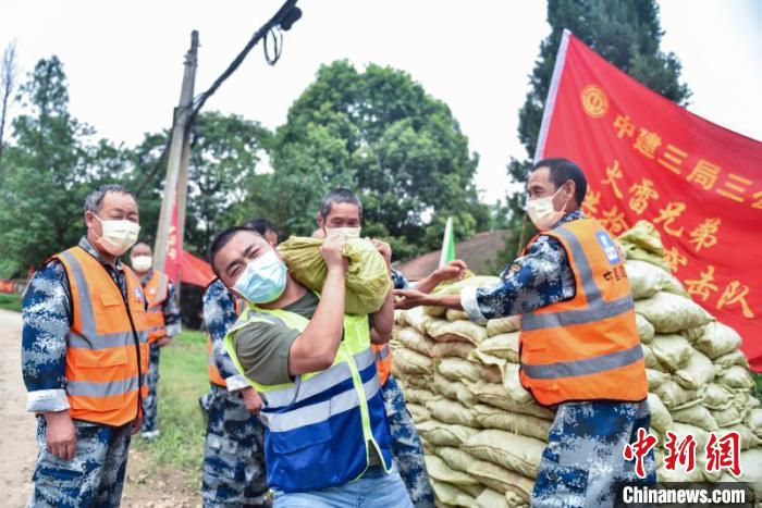 中新网武汉7月16日电 (李经纬 向晶 徐金波)“人在堤在,央企担当,战无不胜,守护江城。”16日,在武汉市江南的武金堤上,面对着滔滔江水,一支依托几个月前完成了火神山、雷神山医院建设的中建三局建设者组建“抗洪抢险突击队”,其演练口号响彻江堤上空。