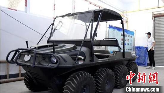 该车采用无封闭设计,下有8条轮胎,前后可乘坐4人。车身周遭一圈防撞条,整体线条硬朗。该车下水如履平地,救援能力强劲。据悉,该车能在水上、山丘、沼泽、雪地等各种恶劣地形中自由行驶,并能在±40℃的超常规温度环境下连续作业。陆上载重454千克,水上载重431千克,陆上可运载6人,水上4人,牵引能力635千克。