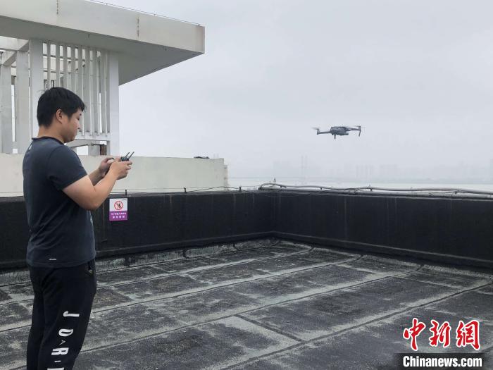 武汉市水务局无人机大队队员启动无人机巡堤查险 艾弘毅 摄