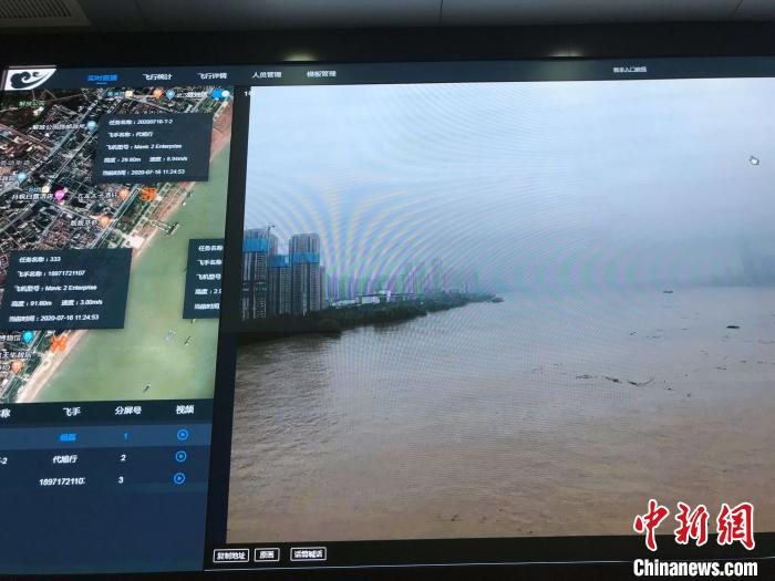 7月16日上午,武汉市水务局水旱灾害防御处副处长杨磊坐在指挥室里,调度3架无人机执行巡堤任务。杨磊介绍,今年入汛以来,武汉市水务部门组建了一支无人机大队,参与到巡堤查险、人员搜救等工作中,推出无人机实时直播平台,通过5G信号实时将现场视频传回指挥中心,截至目前已运用1000余台次。