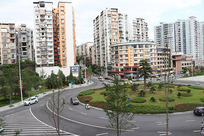 7月19日,天气晴朗,清江河水位不断下降,经过清淤,州城和润城转盘处街心花园鲜花绿草依旧,车流恢复通畅。