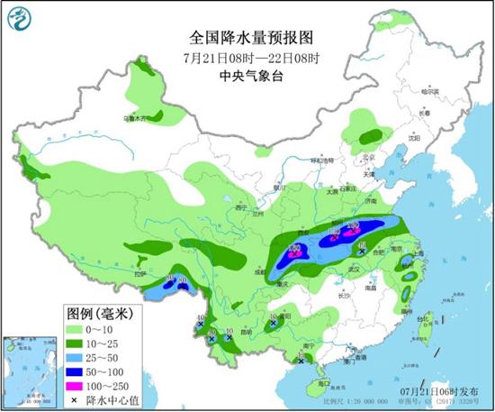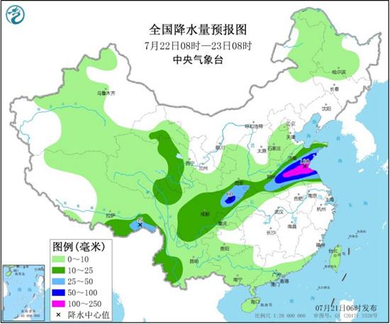 预计,今天开始,新一轮强降雨天气过程又将拉开帷幕,强降雨的东段将北抬至淮河流域,淮河水位还会上涨,防汛工作仍不可放松。具体来看,21日08时至22日08时,西南地区北部和东部、西北地区东南部、江汉、黄淮、江淮北部、江南东部以及华北东北部、西南地区南部、西藏东南部等地部分地区有中雨。陕西南部、重庆北部和西部、四川东北部、河南中南部、湖北北部、安徽北部、江苏北部以及西藏东南部等地部分地区有大到暴雨,其中,重庆西北部、四川东北部、河南中部等地局部地区有大暴雨(100~160毫米)。
