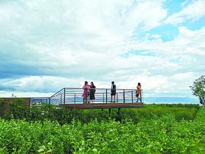 抚仙湖北岸的抚海湾湿地,游人远眺风景。本报记者 张勇摄/光明图片