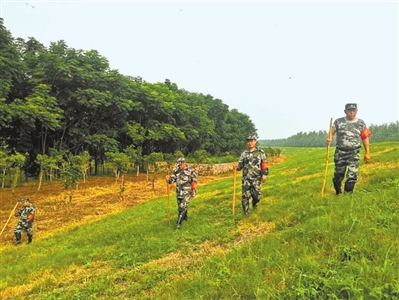 “这个插上红旗做标志的地方是地质钻口,虽已封口,但每次巡堤一定要来检查,看周围是否有异常……”这是朱天志给新上堤的“90后”防汛突击队员唐文讲巡堤技巧和相关要领。