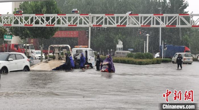 资料图:7月22日,河南省漯河市遭遇强降雨。强降雨导致漯河市部分路段积水严重。漯河市城市管理局供图