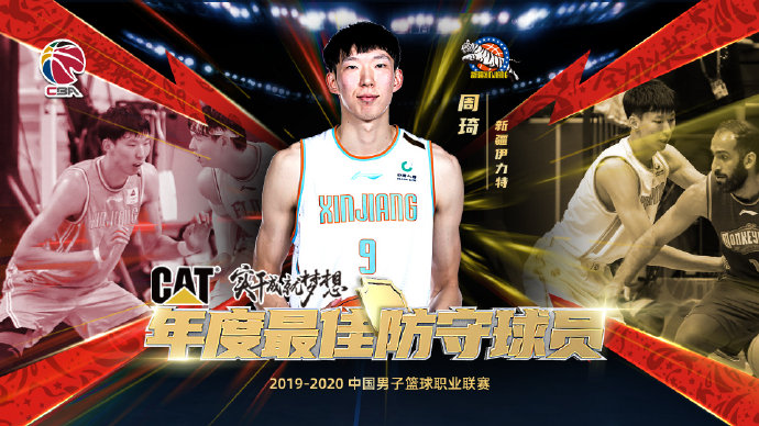 这份遗憾,在随后公布的CBA年度最佳防守队员奖项上稍稍得到了弥补。41次登场,周琦为新疆男篮和球迷交出一份场均22.2分、13.3个篮板、2.9次封盖的华丽成绩单,其中篮板、盖帽两项数据全部进入联盟前五,冠绝本土球员。
