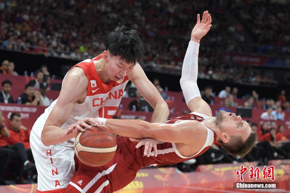 资料图:2019年9月2日,中国队球员周琦(左)在比赛中撞倒波兰队防守球员。当日,2019男篮世界杯A组第二轮在北京举行,中国队以76比79负波兰队。中新社记者 崔楠 摄