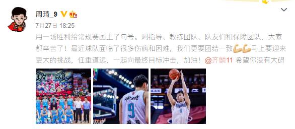 周琦发文对收官的常规赛做总结