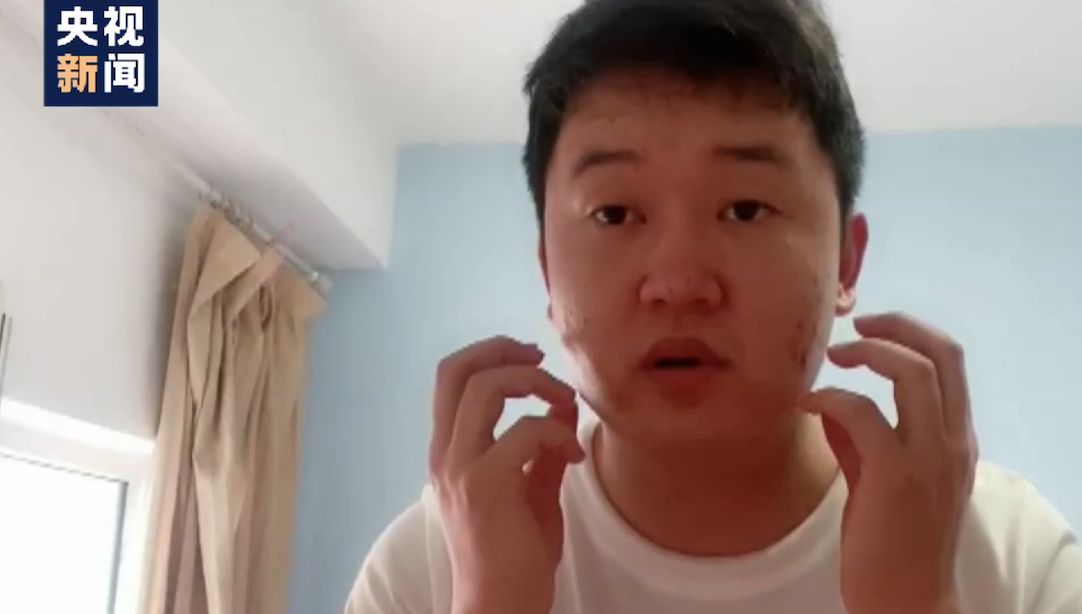 蒋文强:今天因为大连这边天气比较热,这几天穿防护服,身上起了一些疹子,今天就安排我休息。之前突然觉得身体有点痒,刚开始起几个红点,我以为是热痱子,但是今天(7月30日)早上起床以后,发现腋下这一块,一直到后腰这块,全都是红色的斑点,检查之后发现是花癣斑。