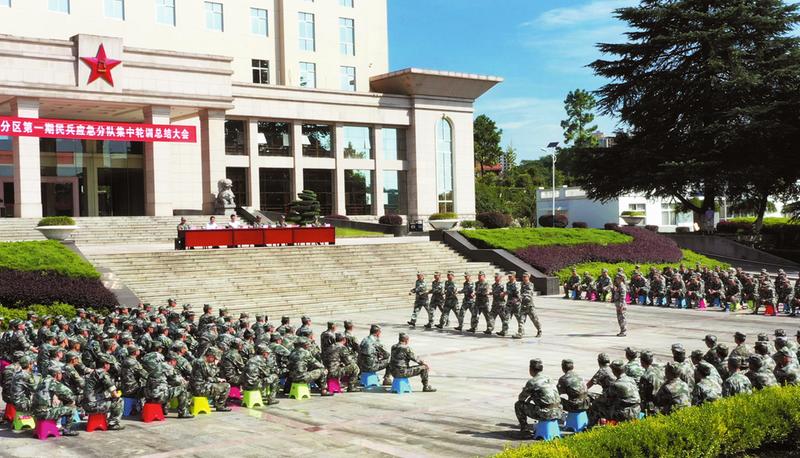 8月2日,2020年度随州军分区第一期民兵应急分队集中轮训结束,来自全市各县市区的200多名民兵接受了为期7天的基础训练和专业训练。图为队列会操汇报展示。 (随州日报全媒记者徐斌摄)