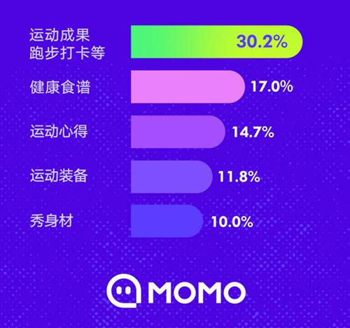 根据陌陌报告,六成网民喜欢在社交平台分享运动健身相关的内容,比如运动心得、健康食谱、运动装备、健身打卡、秀身材等。