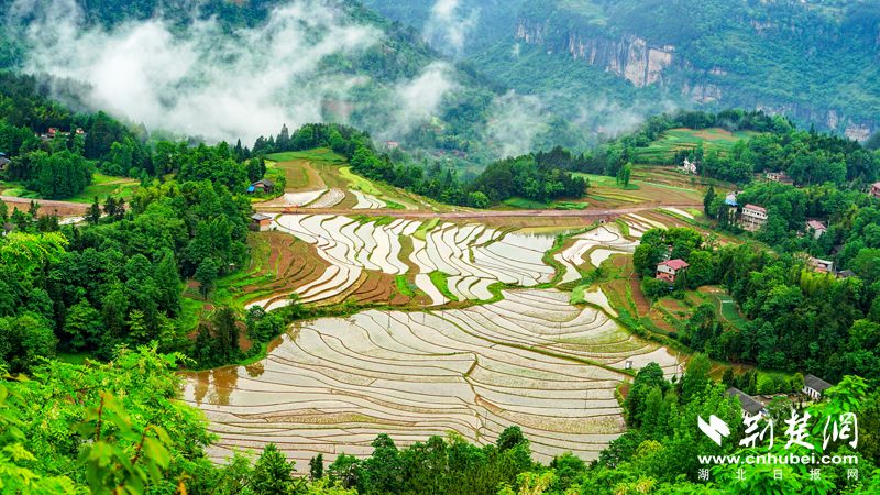 谋道支罗村杨家湾梯田风光。( 通讯员 廖显蓉 摄)