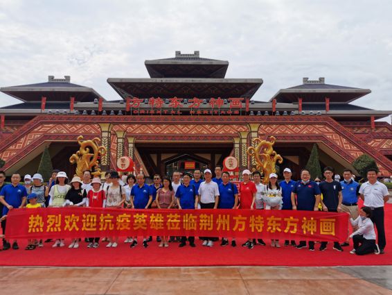 在古城荆州,另一组28名援鄂医疗队员游览了方特东方神画园、荆州古城墙等景点。