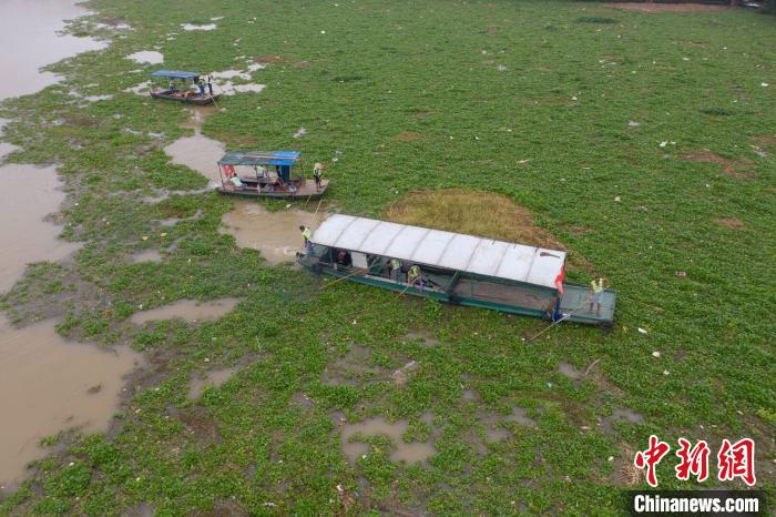 中新网襄阳8月12日电 (胡传林 杨维亭)湖北襄阳市地方海事局汉江清漂队相关负责人12日介绍,经过连续多日打捞,已从汉江襄阳段清理水葫芦400多吨。