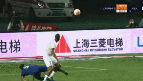 上海申花队大连人的比赛中,钱杰给的争议犯规。