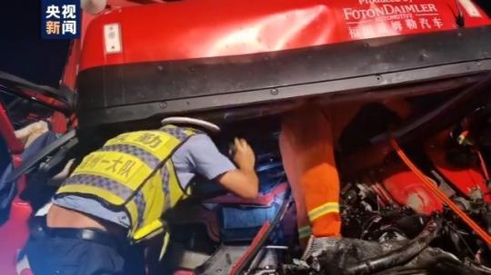 消防救援人员首先利用破拆工具,对变形的车头进行空间破拆扩张,由于车头受撞击严重变形,救援人员又改用拖车牵引的拉力,将变形的车头拉伸扩张,再对驾驶室进行破拆。一小时后,被困的两人被成功救出。后据高速交警调查,事发时厢式货车驾驶人因为长时间驾车导致疲劳驾驶,与前车发生了追尾。