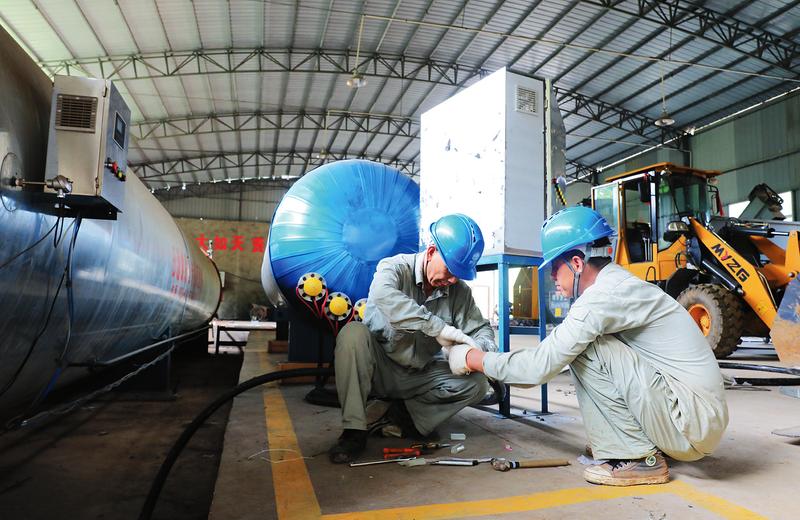 8月12日,国网曾都区供电公司洛阳供电所党员服务队来到龚店村香菇产业扶贫基地,为香菇菌棒制作厂的菌棒加热锅炉进行“煤改电”。架设线路、敷设电缆……服务队员们挥汗如雨,1天之内完成改造工作,为制作厂节约生产成本、乡亲们脱贫增收提供了可靠的电力保障。(随州日报通讯员刘星雨摄)