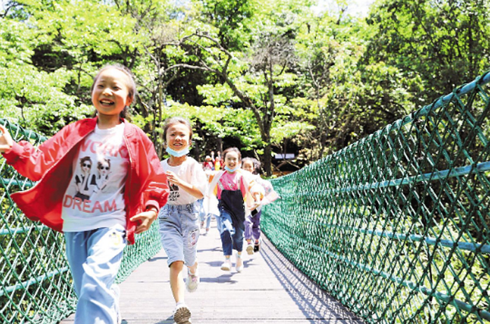 孩子们在咸丰县坪坝营景区森林里玩耍。(通讯员 罗洋 摄)