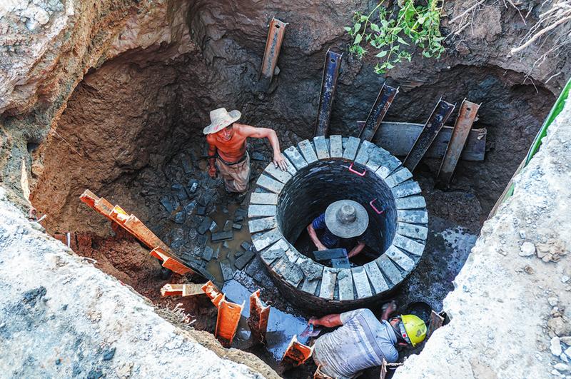 ④8月14日,曾都区南郊柳树淌社区污水管网暗井施工现场。