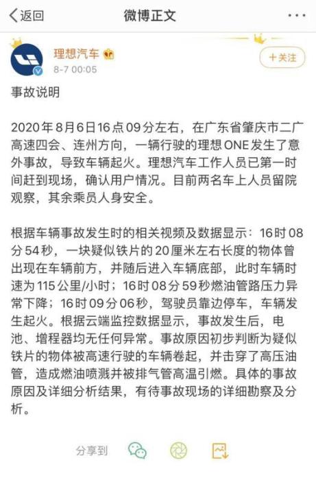 7月30日,理想汽车在纳斯达克上市。一周后,理想汽车又“火了”。8月6日,广东省肇庆市二广高速四会、连州方向,一辆理想ONE在行驶过程中起火,再度引发关注。