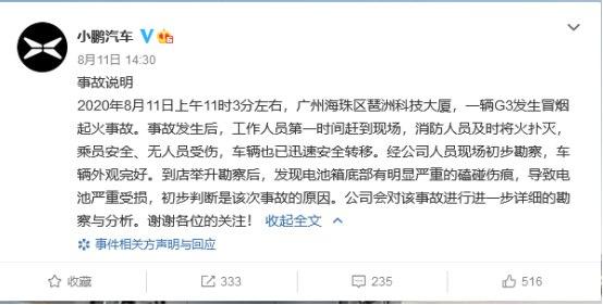 8月8日,小鹏汽车提交上市。没想到,3天之后,小鹏汽车也跟着理想汽车“起火了”。8月11日,广州海珠区琶洲科技大厦,一辆小鹏G3汽车起火,还发生了小型爆燃,消防员一度不敢接近涉事车辆。